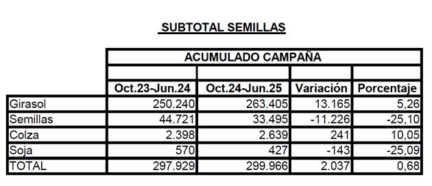 Estadística de ventas de aceite de girasol al mes de junio de 2025